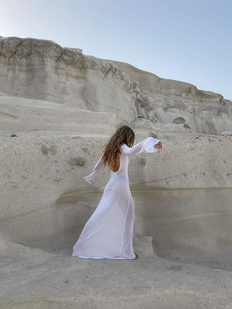 Our Celina sheer maxi dress features a classic round neckline, elegant long sleeves and an appealing sheer design. The open back gives the dress a seductive touch, while the maxi length creates an elegant silhouette.