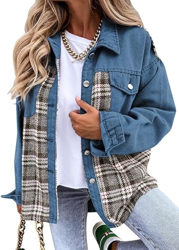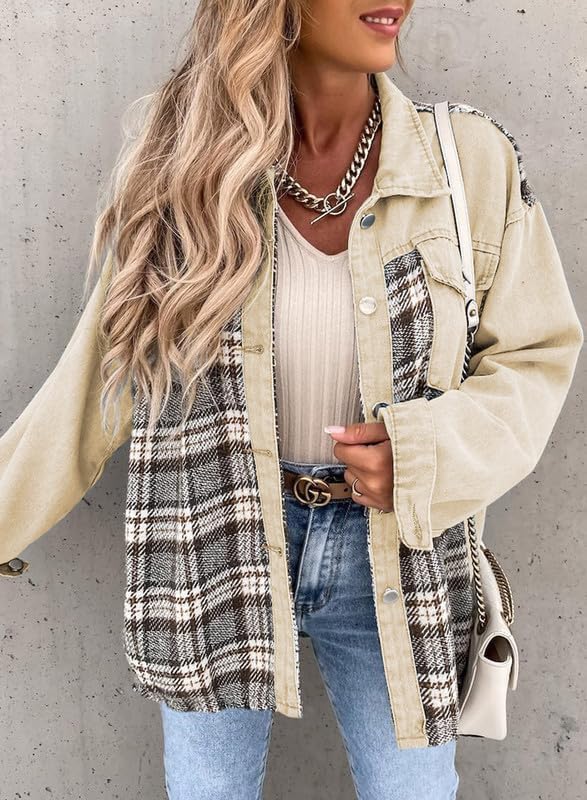 Denim Plaid Cotton Jacket for Women – Boyfriend Oversized Fit