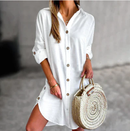 Sofia - shirt dress beach pearl linen